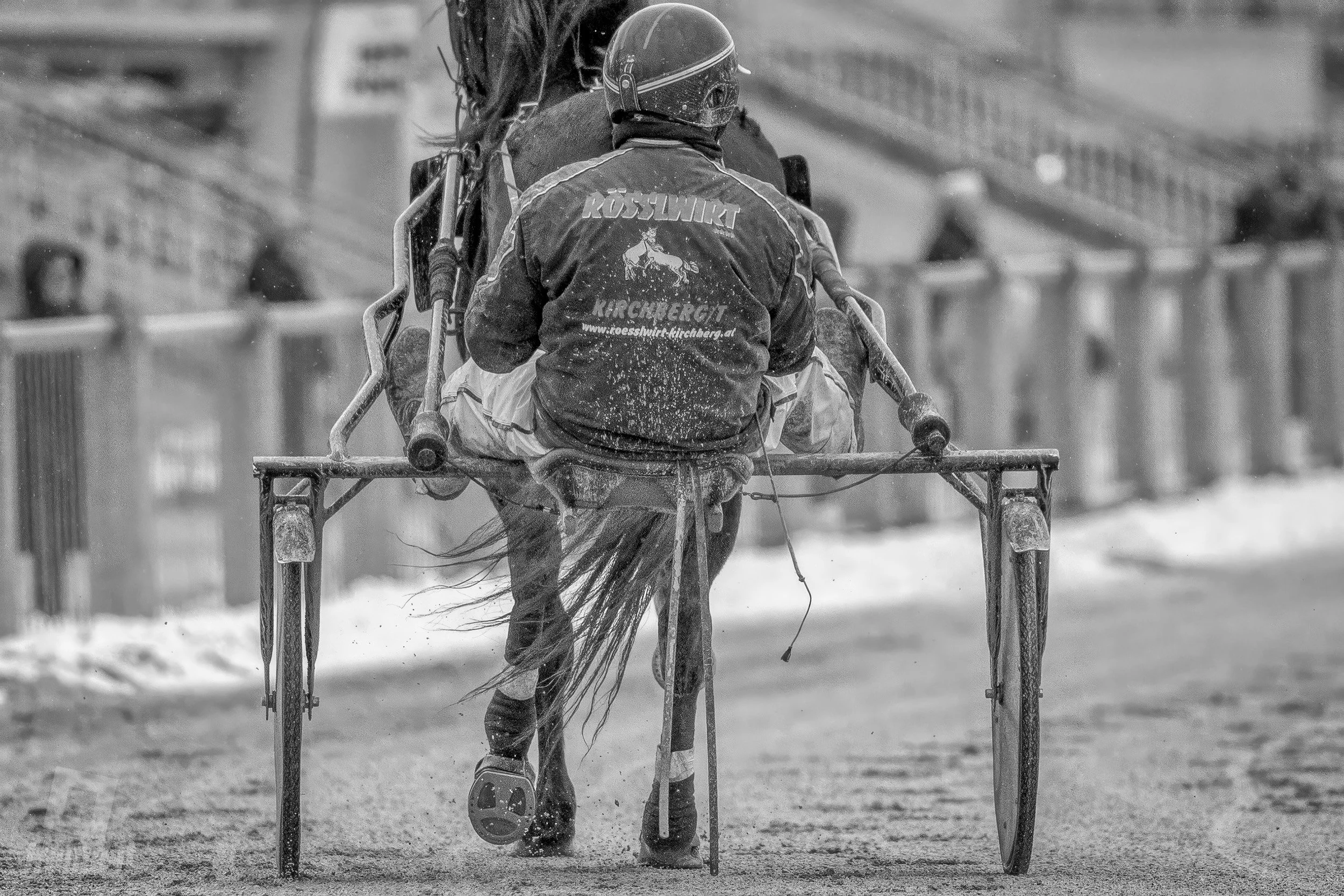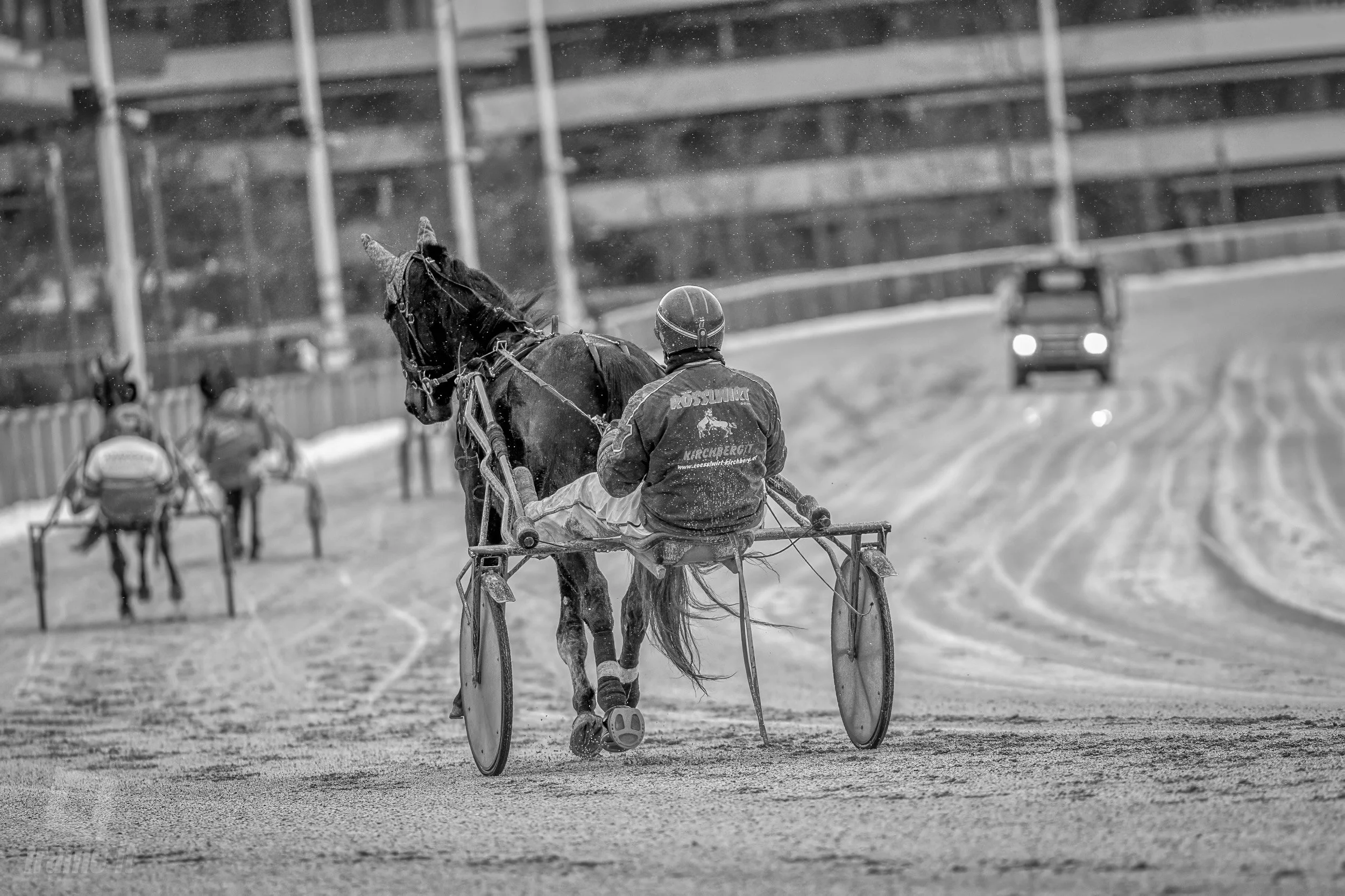 Am Sonntag, 22. Februar, wurde im Trabrennpark Krieau trotz widriger äußerer Bedingungen hochklassiger Sport geboten. Regen, Kälte und eine tiefere Bahn verlangten Pferden, Fahrern und Teams alles ab – und genau das machte den Renntag fotografisch besonders reizvoll. Hier entstehen oft die intensivsten Bilder: dampfender Atem, aufspritzender Dreck, konzentrierte Blicke.